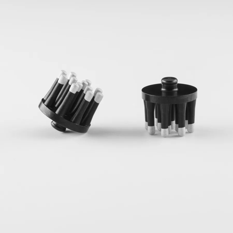 Brush Flex design has been designed for hair penetration and improved comfort. In hairy regions, the legs can easily penetrate hair and thanks to their design, the oriented radial displacement will improve contact with the skin.