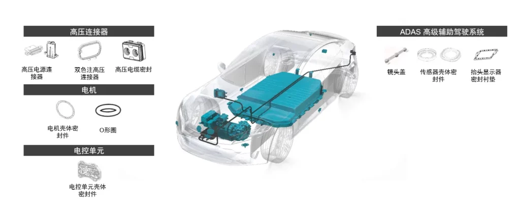 我们已经开发了多种选择方案 – 从橡胶件、封边密封件和液硅制成的2K密封衬垫,到O型圈和连接器密封件,涵盖了我们的客户在电气化动力系统中所会碰到的诸多关键应用。
